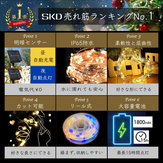 クリスマスに向けて職場や自宅でイルミネーションの光で癒やされました。ソーラーなので電池の事も気にしなくてもいいので本当に良かっです。