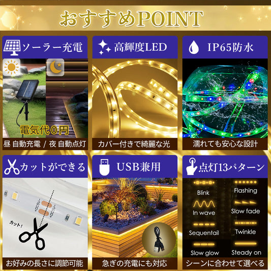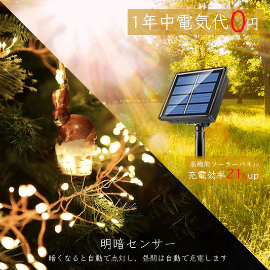 イルミネーションライト 大型パネル ソーラー充電式 200球 20m
